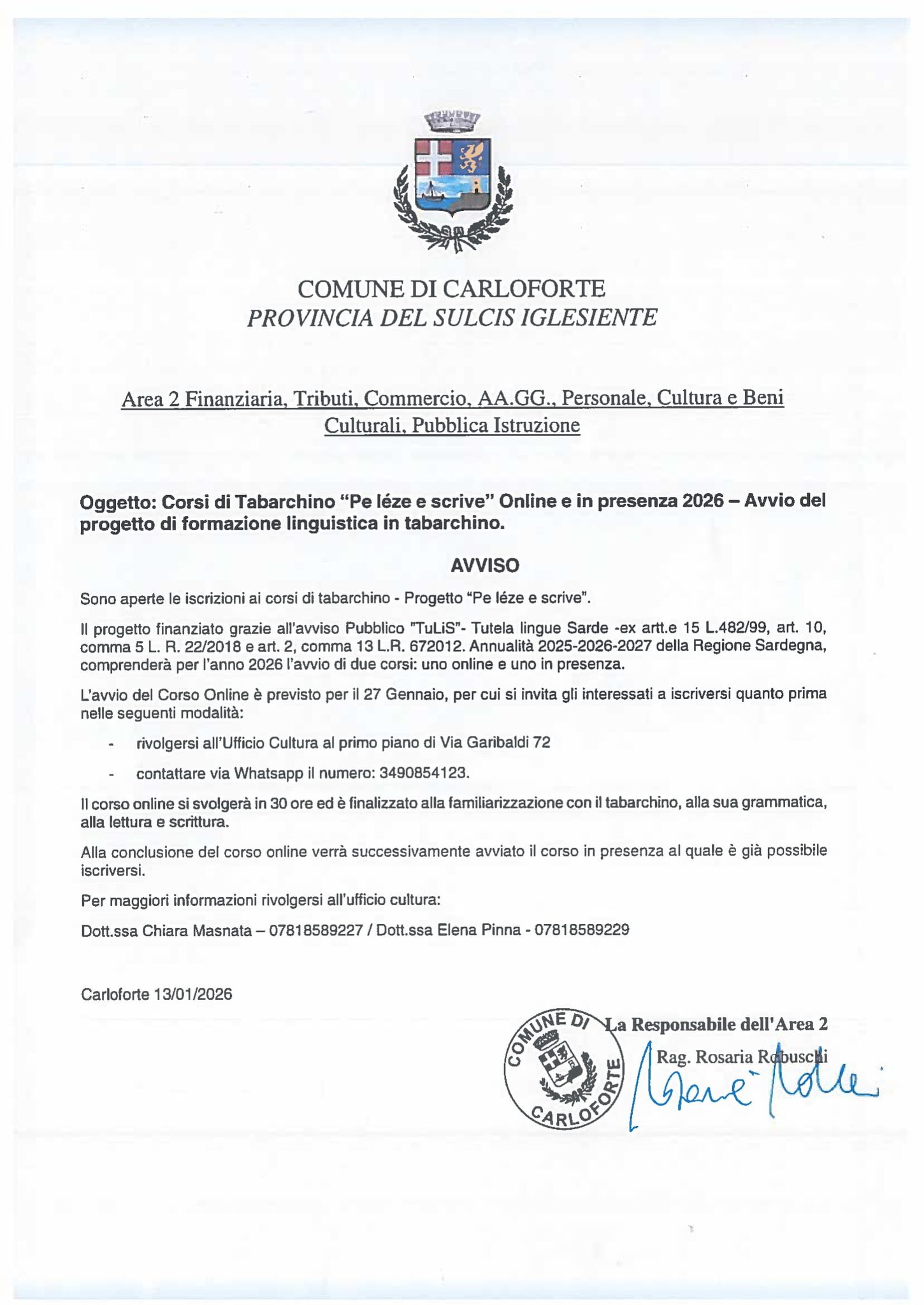 Per l’anno 2024, i progetti sono stati finanziati grazie all'avviso Pubblico "TuLiS" Tutela lingue Sarde - ex art. 15 L.482/99, art.10, comma 5 L.R. 22/2018 e art. 2, comma 13 L.R. 6/2012 Annualità 2024 della Regione Sardegna, con la partecipazione del Comune di Carloforte.